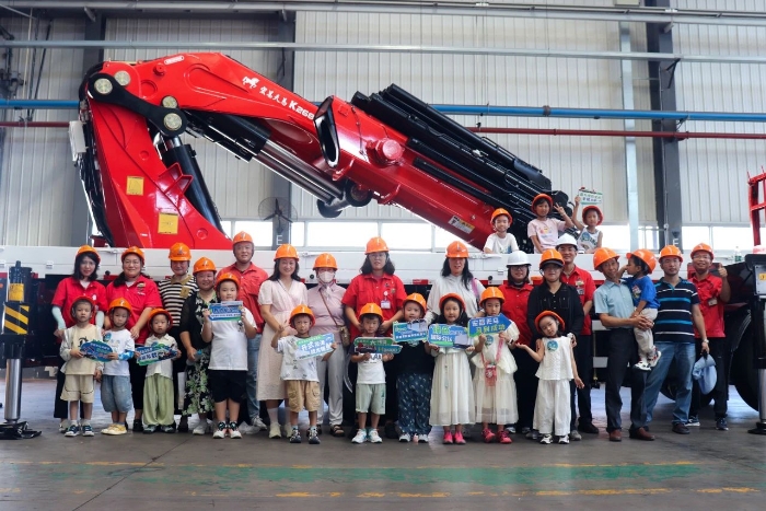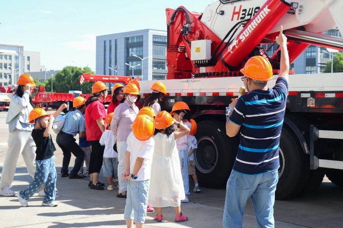 宏昌天马H8280、H3480等大吨位随车吊威武亮相,技术员现场演示吊载作业,孩子们仰头惊叹,纷纷与“机械巨人”合影;