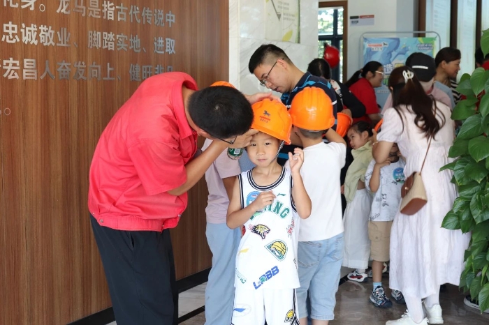 随后,安环部门为大小朋友们带来了一场生动有趣的安全小课堂,孩子们戴上安全帽,俨然一副“小小工程师”的模样,兴奋地开启了今天的探秘之旅。