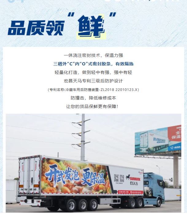 冷链物流迅速发展,果蔬、海鲜等食品运输市场需求激增,谁能经受生鲜安全品质考验?宏昌天马冷藏半挂车疾驰领“鲜”,合规多载,超级可靠,解锁“鲜”行方式!