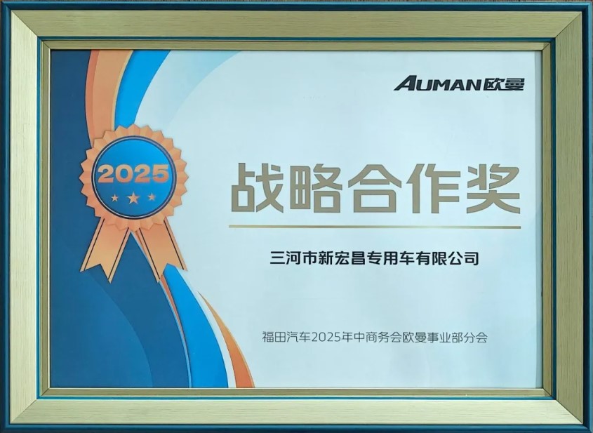 2025年7月28-29日福田汽车年中商务会在北京隆重举行,三河市新宏昌专用车有限公司作为核心改装合作伙伴受邀参会,并荣获福田欧曼“战略合作奖”!