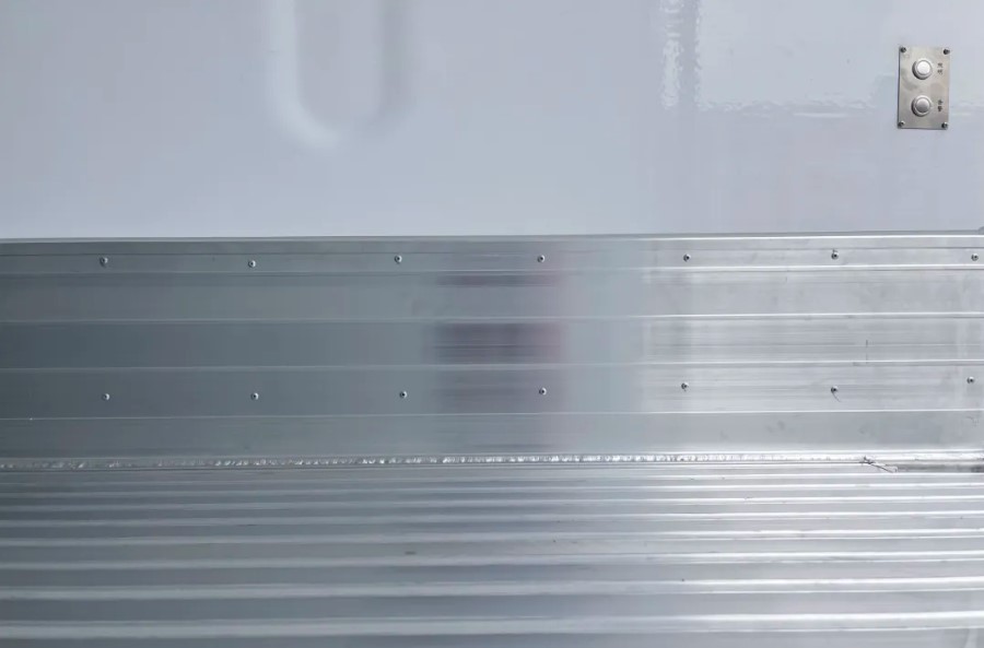 02防磨板,标配300mm铝型材防磨板,有效保护侧板蒙皮,避免叉车上下对厢体的损害,降低使用成本