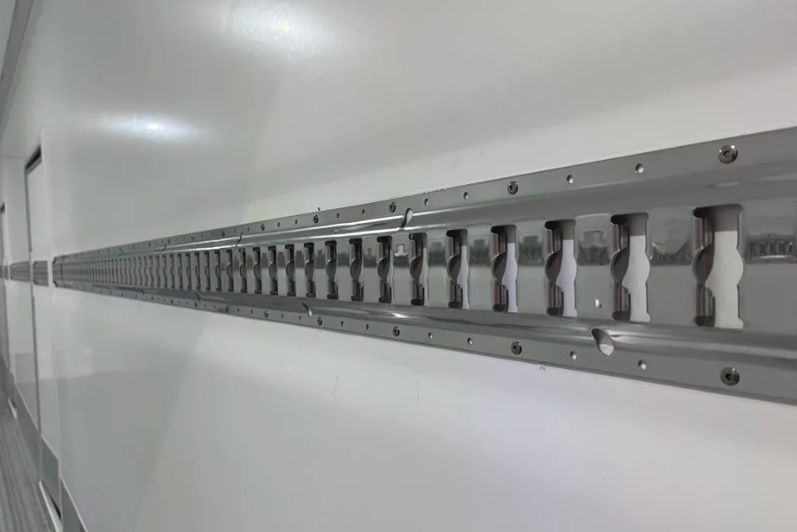 02固货槽,根据客户需求,选择碳钢镀锌或不锈钢材质的固货槽,也可选择嵌入式安装,不影响厢体内尺,来保证最大的装货宽度