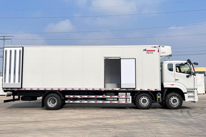 医药车采用医药专用通风槽结构,厢体四周加装医药专用铝合金通风条,地板采用50mm堡型铝导轨,确保箱体立体风循环顺畅,符合医药监测标准;